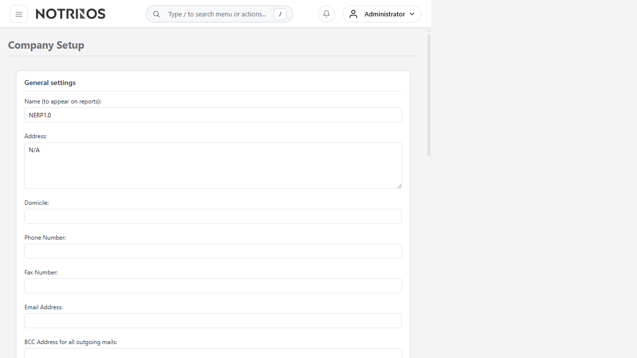Configure the core company information and system-wide defaults.